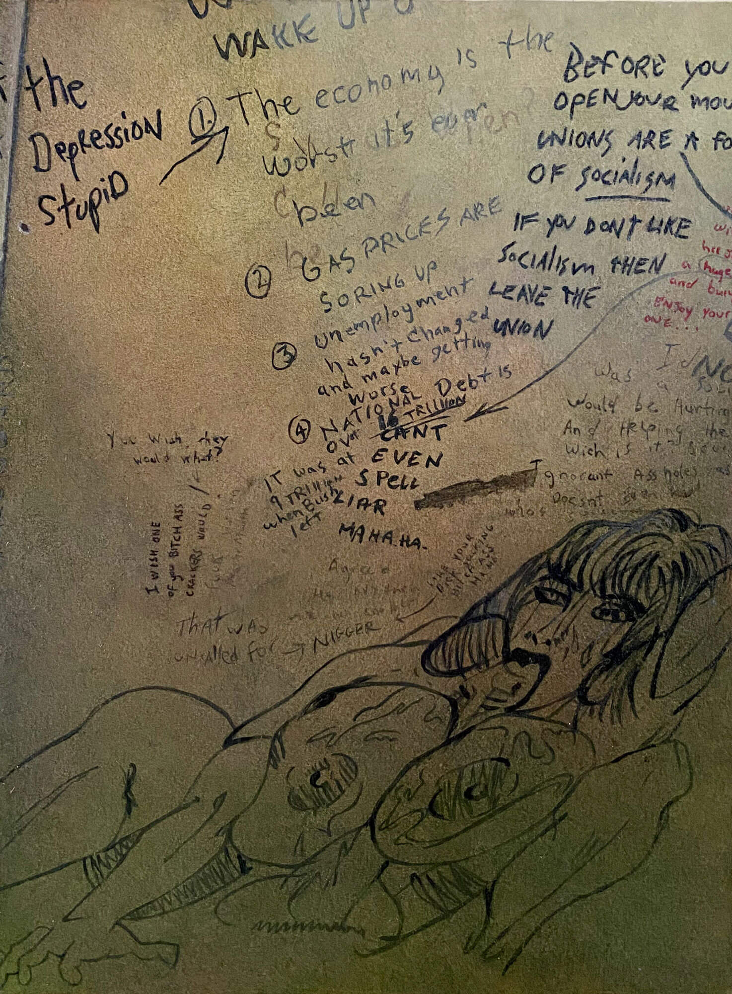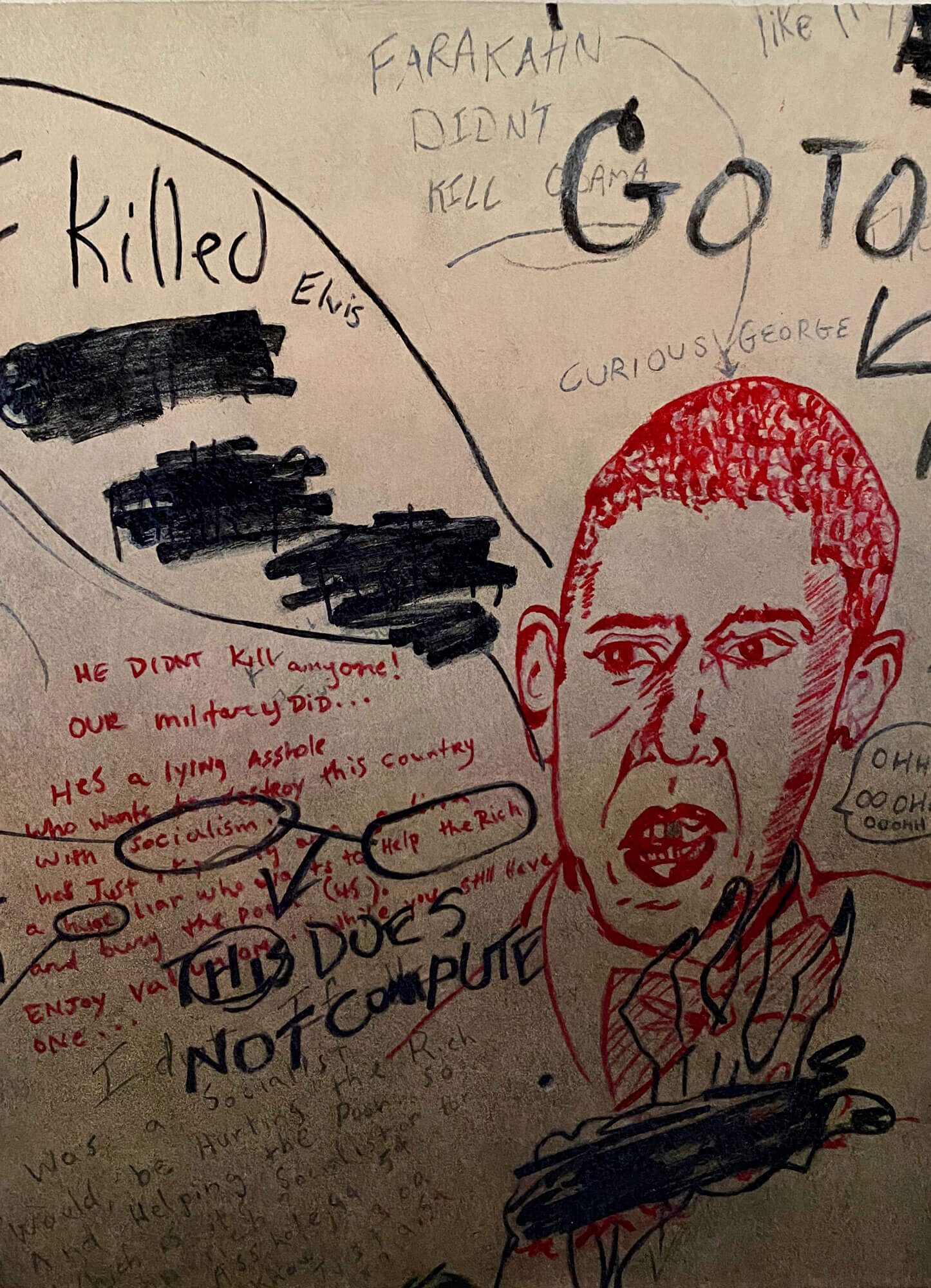 The Election of Barack Obama brought forth hope and talk of a post-racial society. A hope never expressed in the bathroom stalls, nor realized outside of them. The unfolding reality was a visceral backlash in which old racial stereotypical tropes flourished. A noticeable uptake is “exhibited” in associating our black citizenry, and most all none-white Christians for that matter, as un-American, Muslim terrorists, socialists, primates, sexual threats to “our women”, criminals, ad nauseam… It is this animosity, born of a fear of others, that has fueled and continues to embolden the existential threat that is Trumpism.