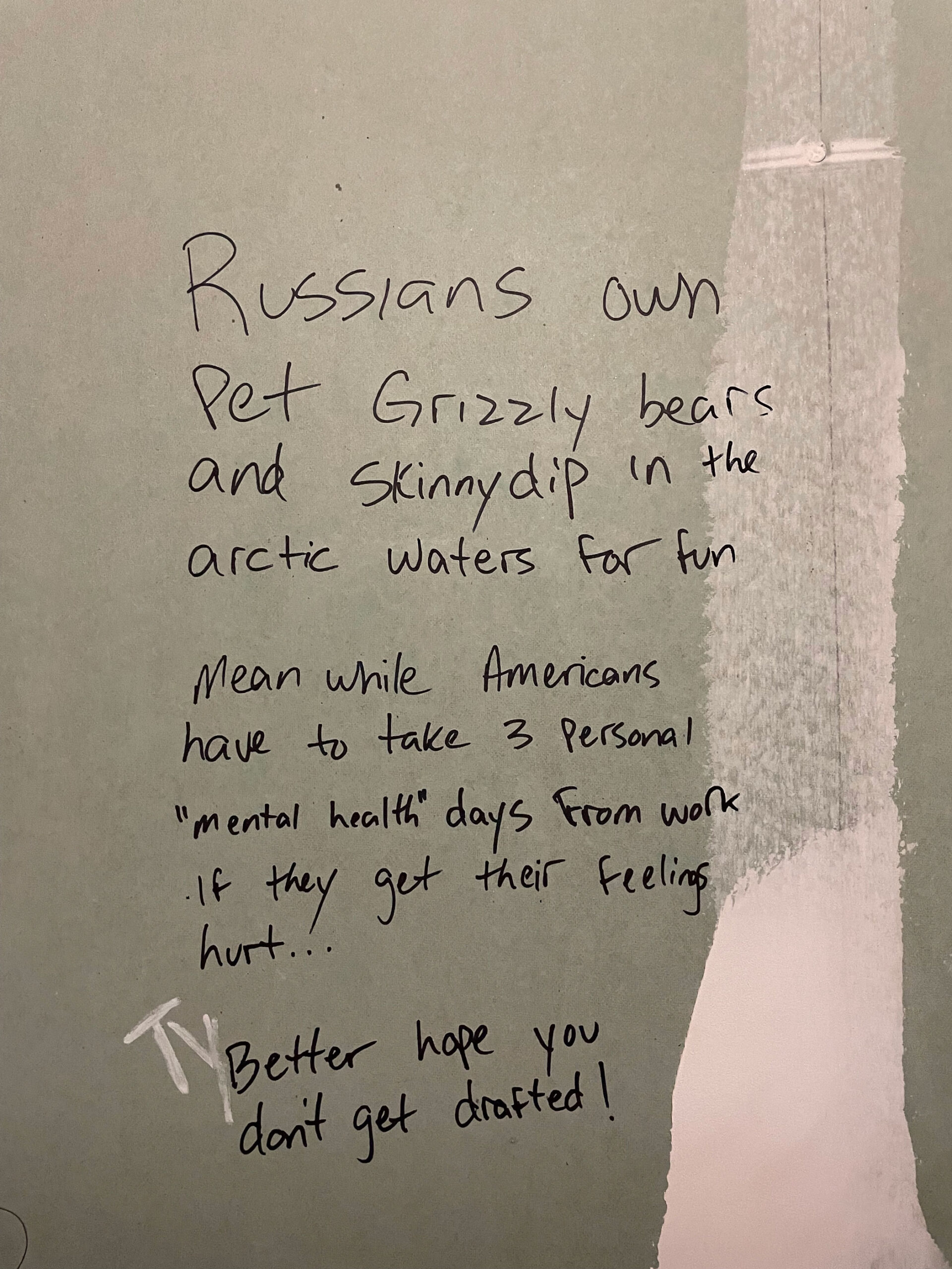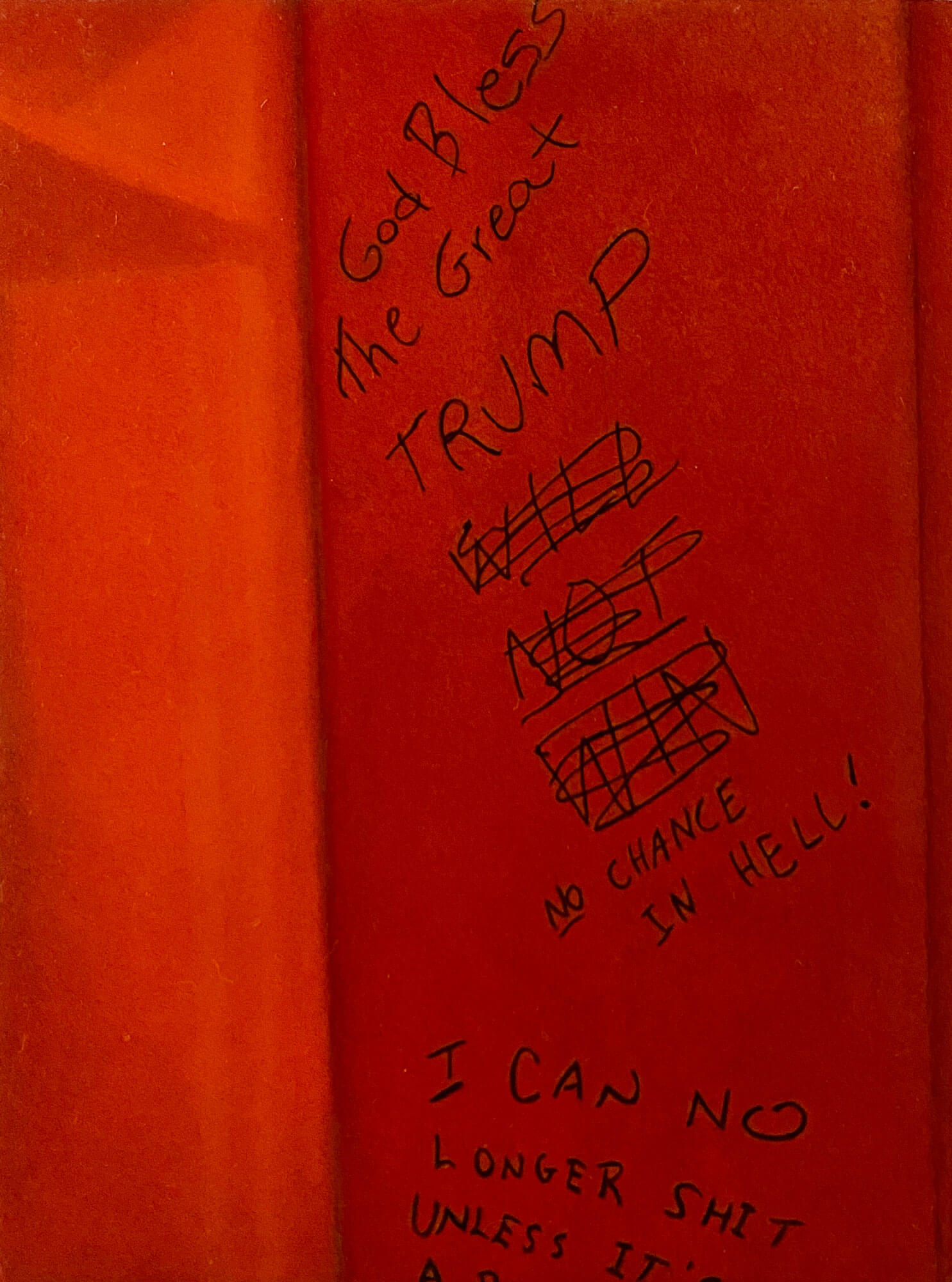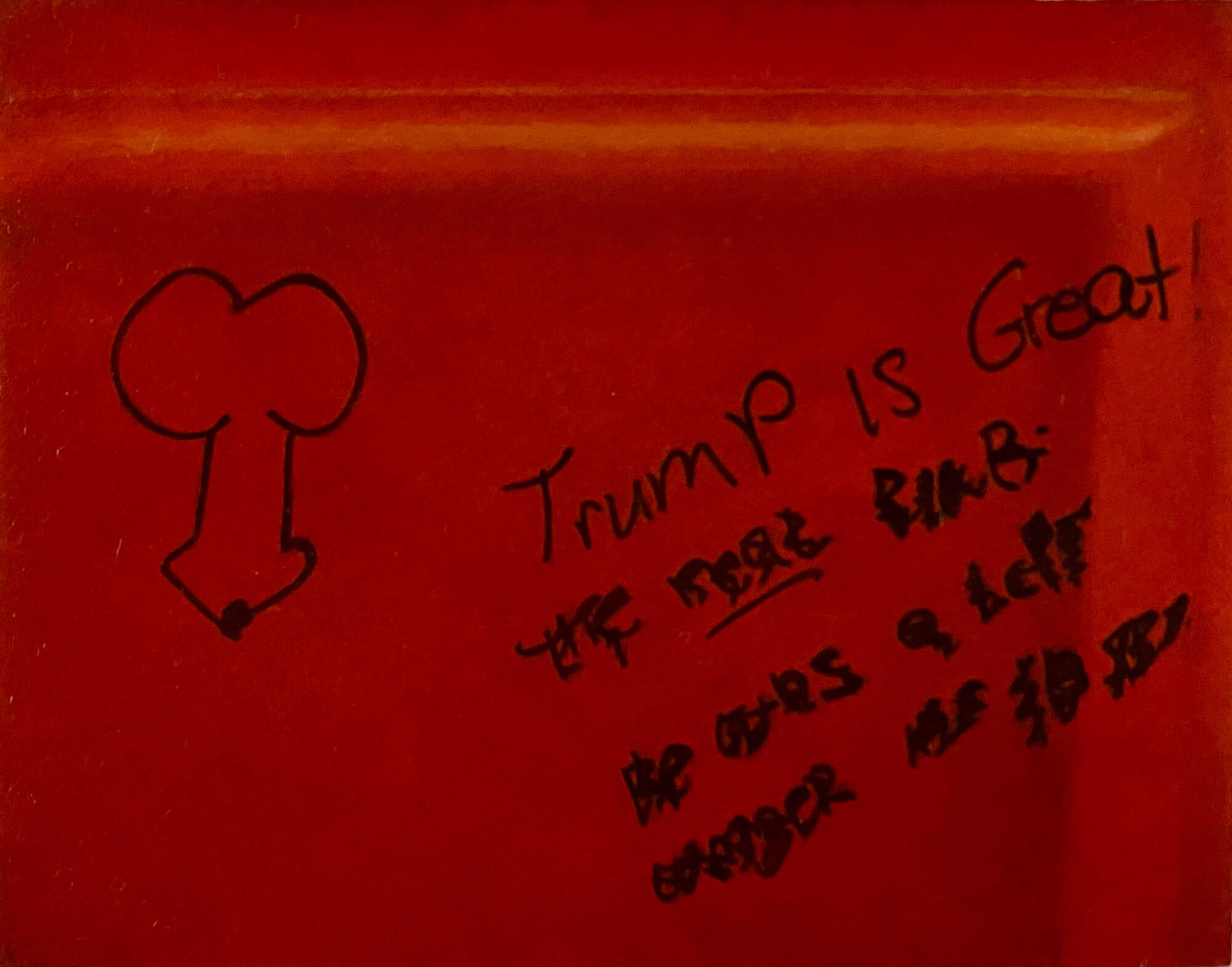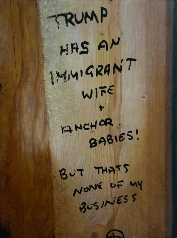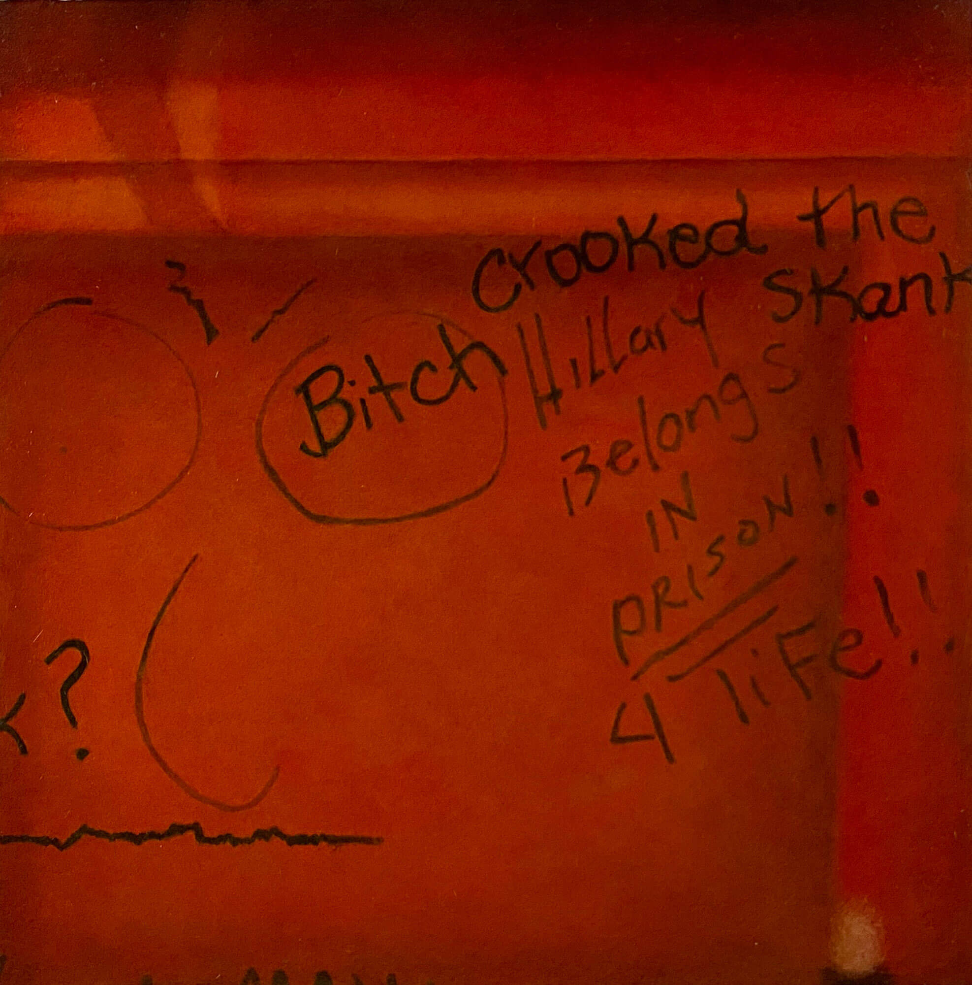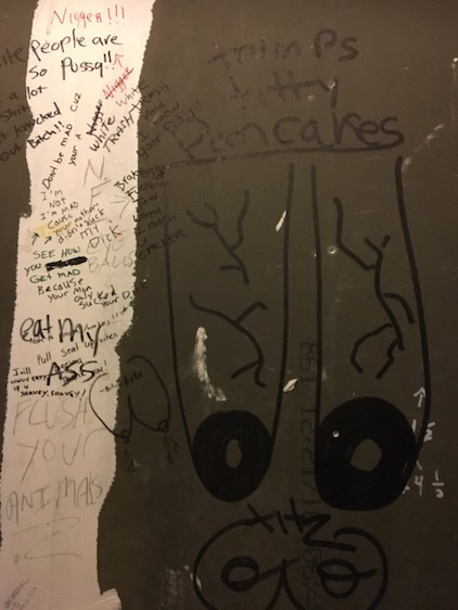 The rise of the MAGA Trump era has witnessed an acceptance of once shunned, closeted, white nationalism. It is not a surprise that there is no shortage of the common antagonistic graffiti attacking minorities and “others”. What was previously shocking or unacceptable is now becoming routine. What is new is the expression of the idolatry of a leader, Trump himself, furthering the cult-of-personality essence- the personification of a willfully blind allegiance. The big lie and divisive conspiracies concurrently have entered the bathroom stall lexicon. These are the honest expressions of a large portion of the American zeitgeist.